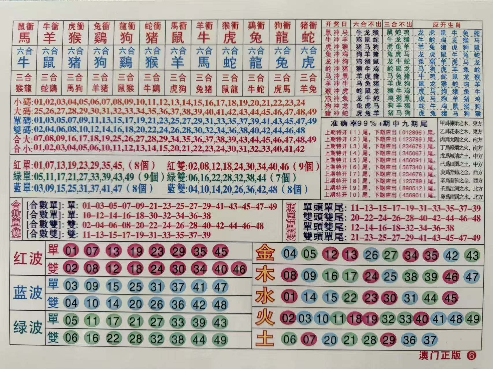 | 红蓝绿肖 红肖: 马、兔、鼠、鸡 蓝肖: 蛇、虎、猪、猴 绿肖: 羊、龙、牛、狗 | |||